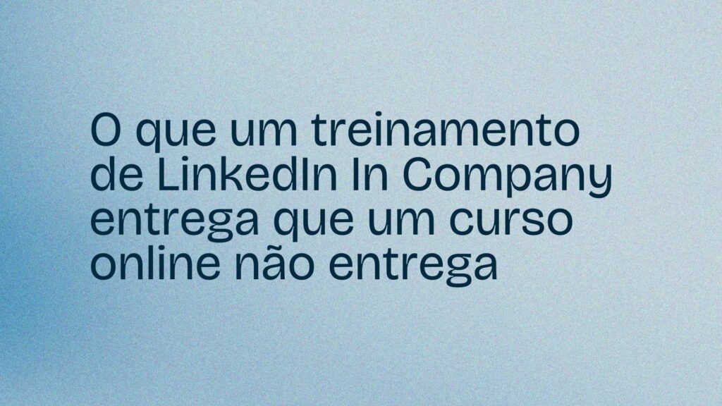 Neste artigo, você vai entender as diferenças reais entre um curso online e um treinamento de LinkedIn In Company e por que essa distinção importa tanto para empresas que querem resultados concretos na plataforma.